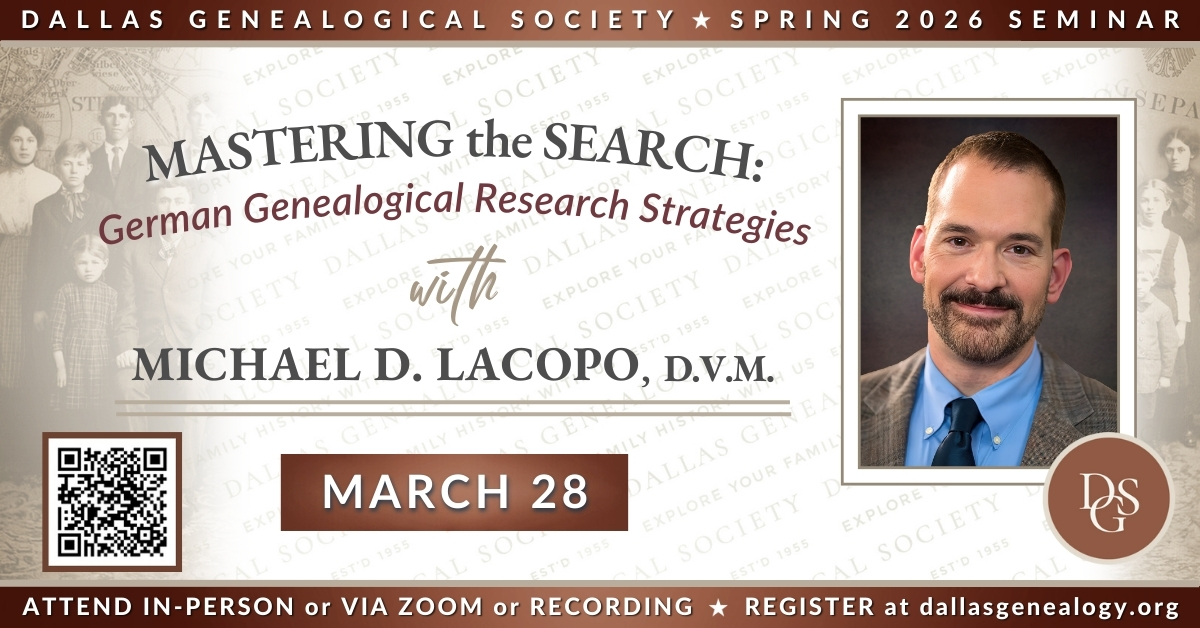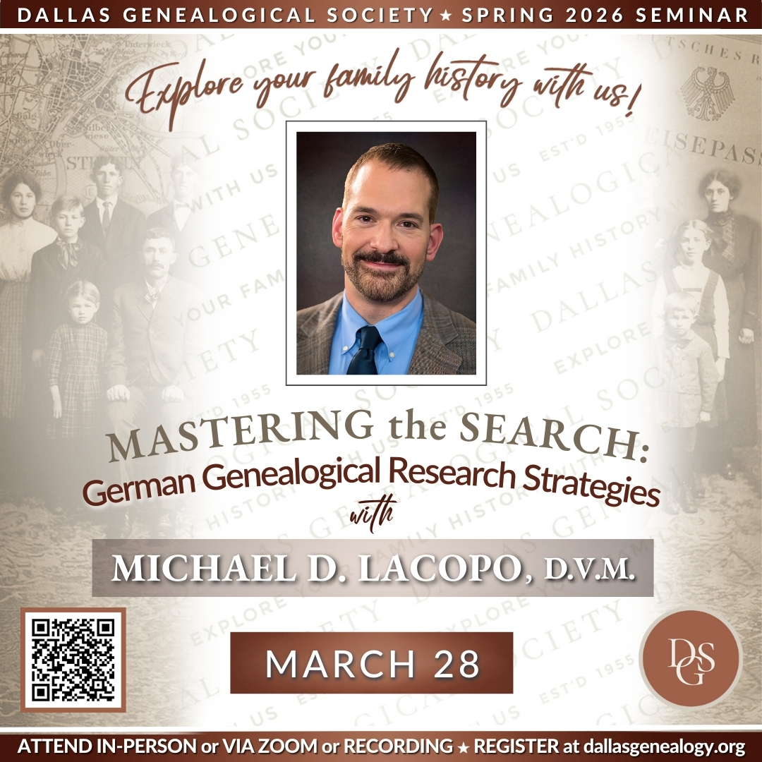 - September 21, 2023: Discover Your Family History at the Dallas Public Library